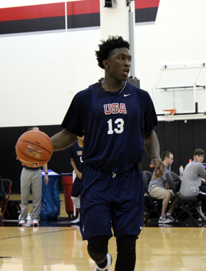 Though he measured in about an inch shorter than his typically listed height, his 7-3.5 wingspan, 9-foot standing reach and 251-pound frame all nullify any size concerns for Alexander as a 4. His trademark is being explosive near the rim and he had more ferocious, punishing dunks than any other USA Team member in practice. He is very difficult to box out and his length leads to some massive rejections. His post footwork is a work in progress and while he has added range to his jumper, he is still not overly confident away from the basket. Cliff had a pretty quiet game and he has only been playing organized basketball for just over four years. His development has been quite positive and if Joel Embiid is any indication, Bill Self could do wonderful things to get the most out of him at Kansas. Will probably have a very short stay, as he has physical attributes and motor are tailor made for the NBA.